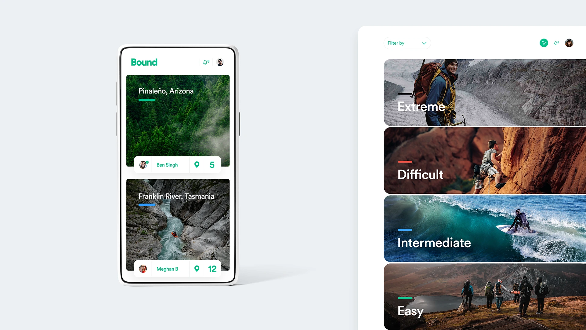 UX design and branding for a new social platform connecting hikers, climbers, and outdoor adventurers. Built for movement, exploration, and a sense of community.